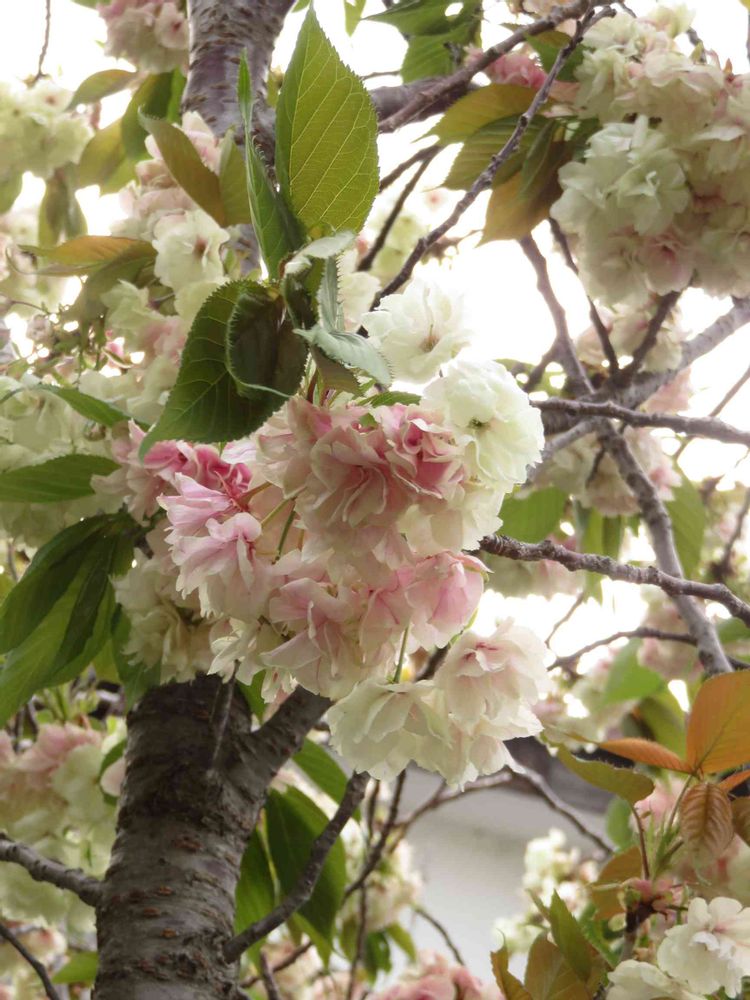 薄紅色と、白の取り合わせが美しい八重桜。品種名を教えてくださるでしょうか😅‼️❓よろしくお願いします🤲