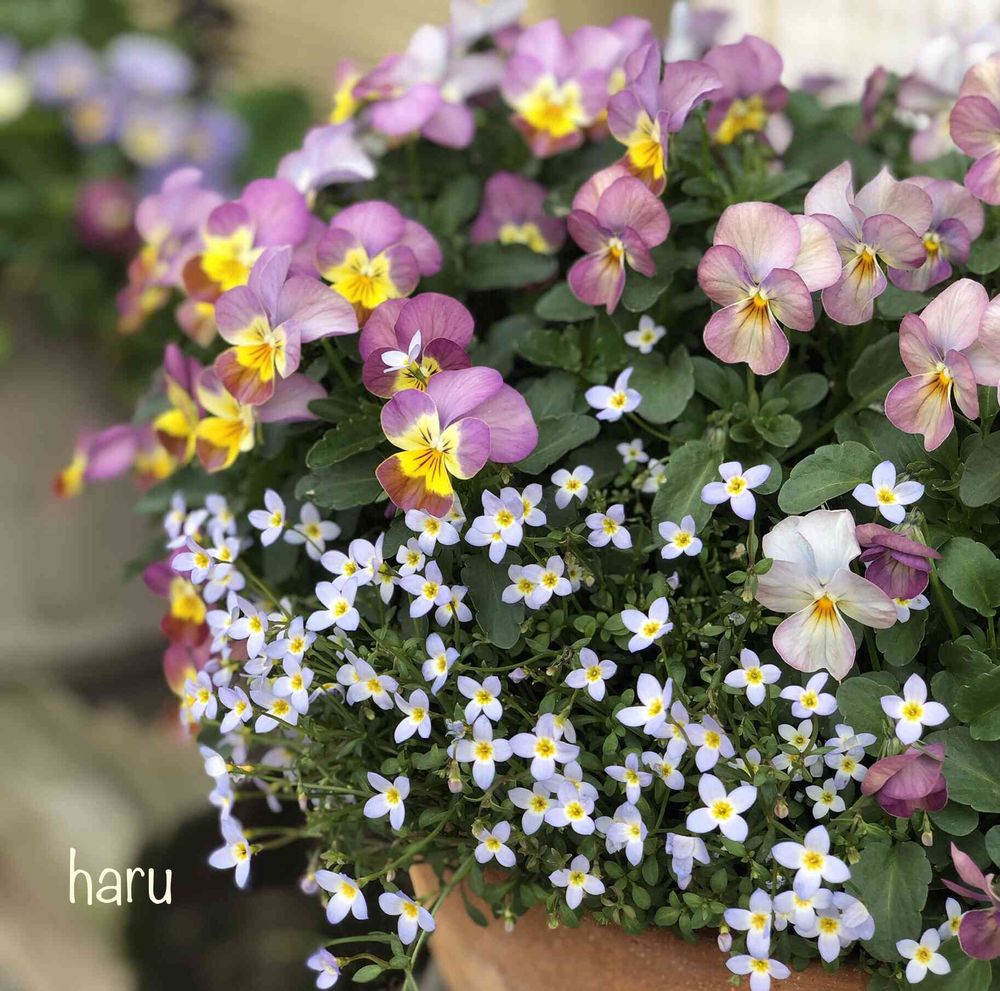 盛り盛りなビオラさんとヒナソウ綺麗(♥︎Ü♥︎)↑︎↑︎