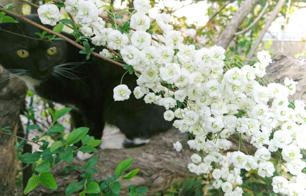 白いお花に、黒ネコちゃん、まるで絵画みたいに素敵~♡