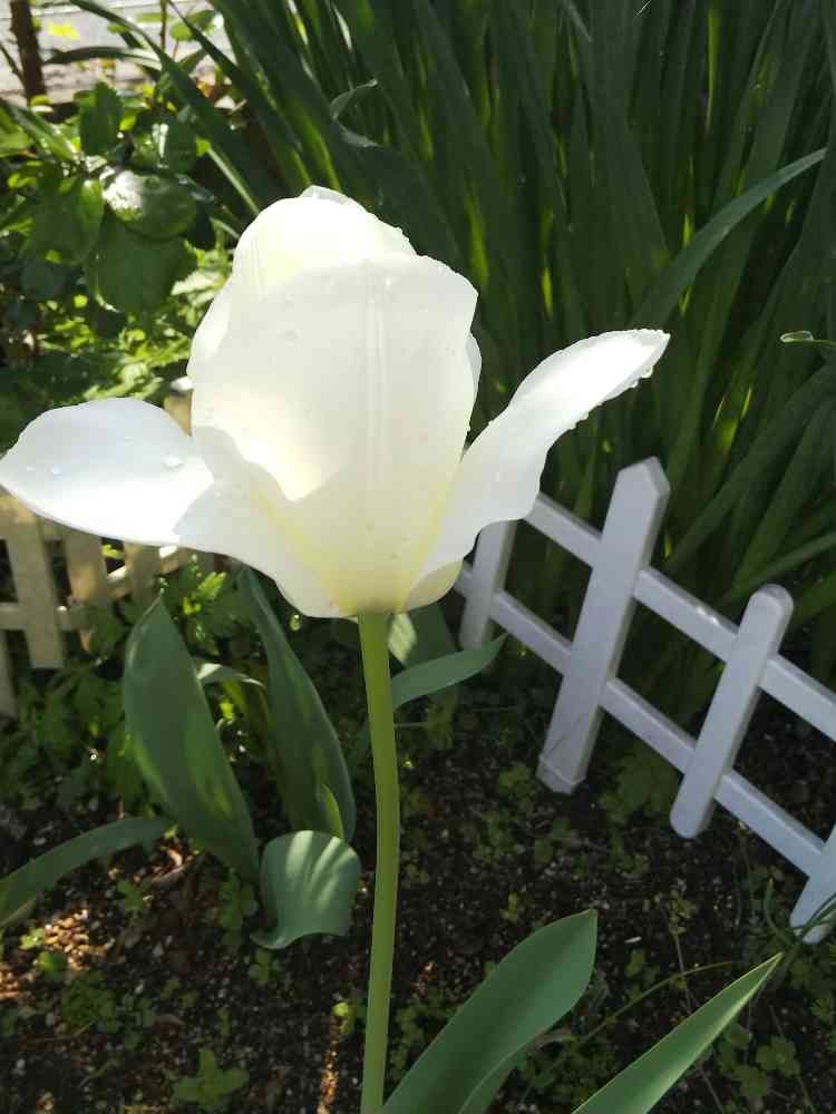 去年掘り上げた球根を秋に植えたら白いチューリップが1輪だけ咲きました💕