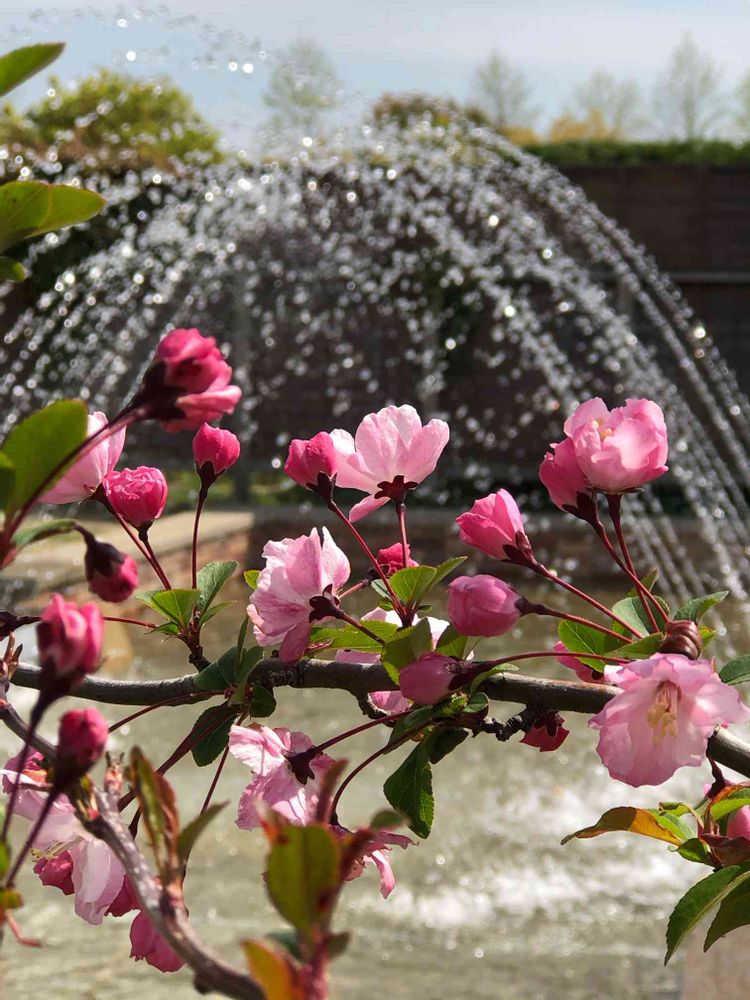 噴水⛲️✨✨と花海棠🌸さんのコラボpic❣️良い感じ〜👍😘