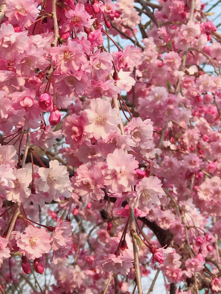 家近くの枝垂れ桜、満開近いです🌸