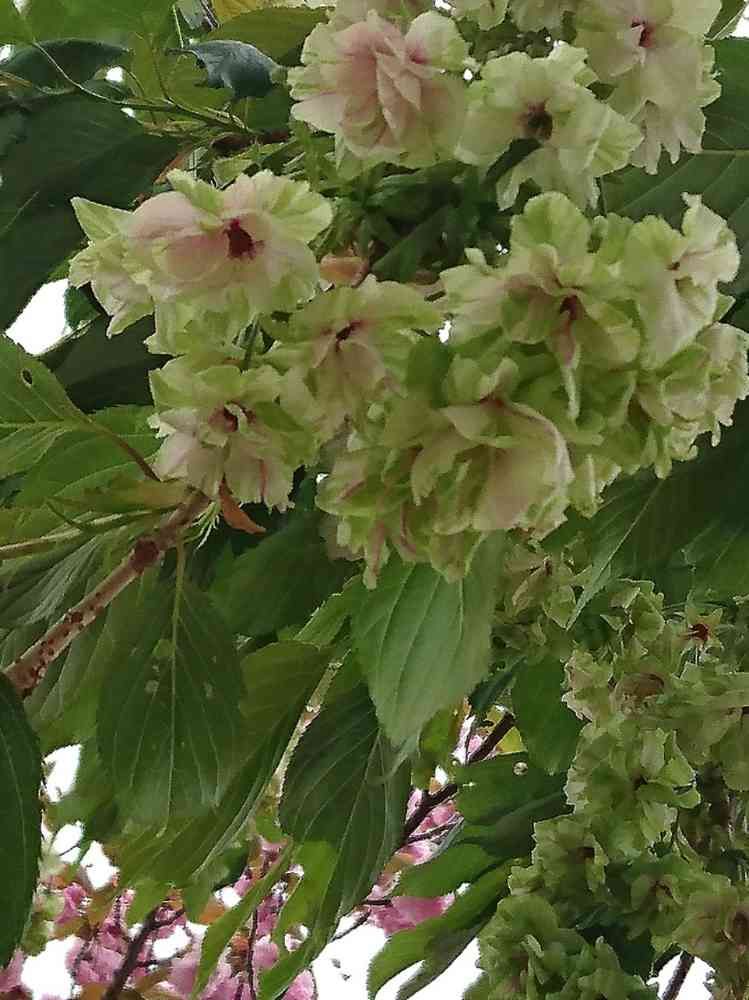 黄緑色の中にピンクの花びらが入って、綺麗ですね🥰 貴重な桜、ギョイコウサクラ🌸🌸🌸