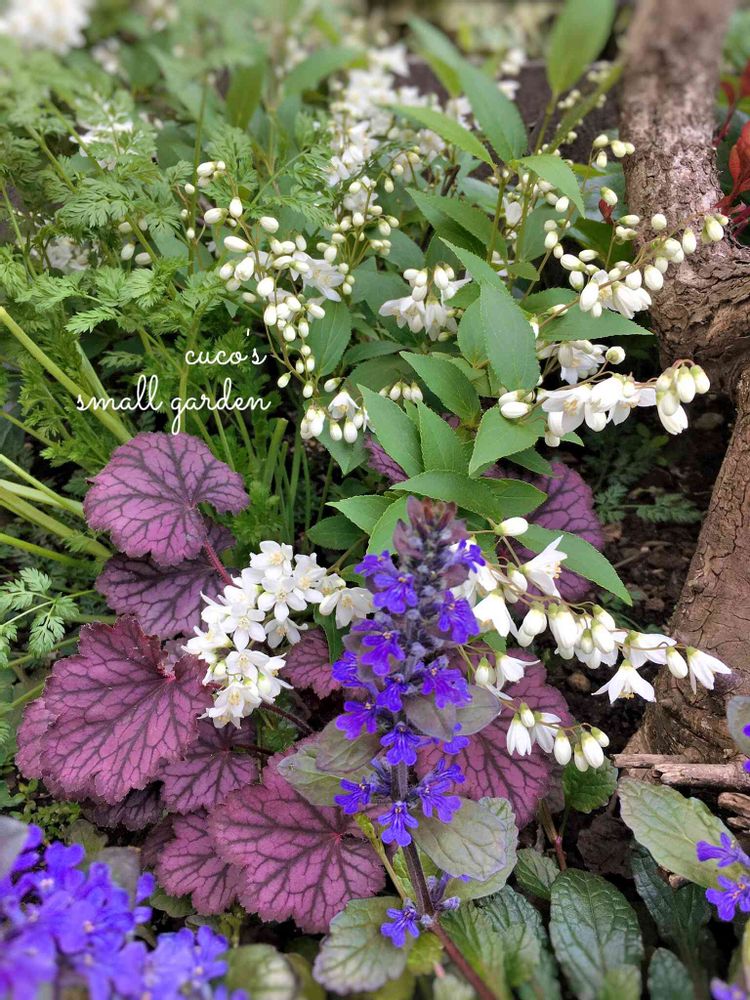 色合いといい、配置バランスといい、素晴らしいセンスですね🥰💕cucoさんのpicでアジュガをよく目にする様になって好きな花に仲間入りしました!私も育ててみようと思います❤️ヒューケラの色も好きです💕