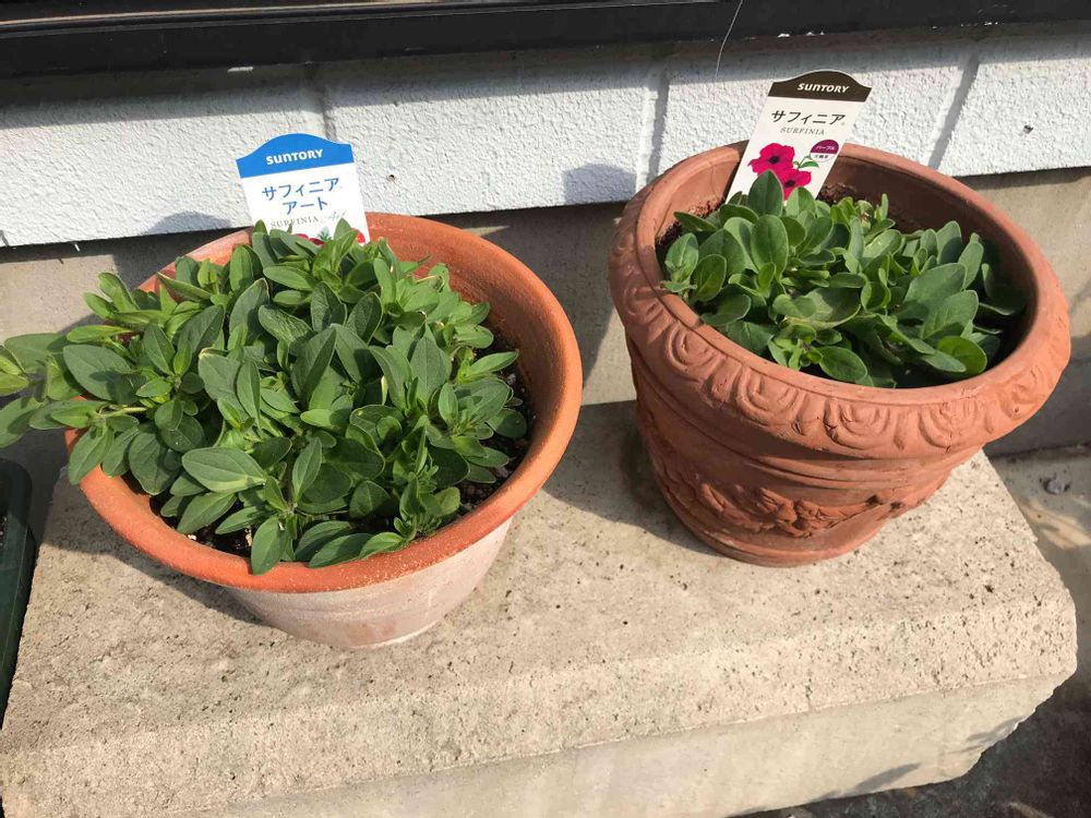 7号鉢1株植えのサフィニア達は、大きい鉢植えより成長が早い気がするけど、根の張りが成長に合っているからなのか、品種のせいなのか。