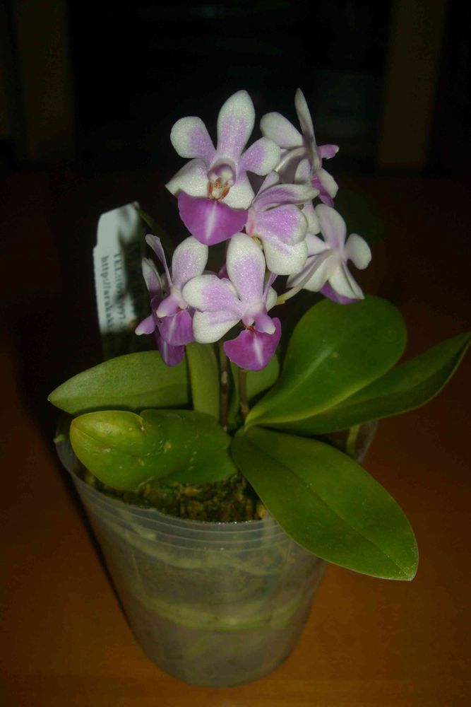ミニ胡蝶蘭(Anna-Larati soekardi)を入手しました。 さて何で植替えするのか思案中