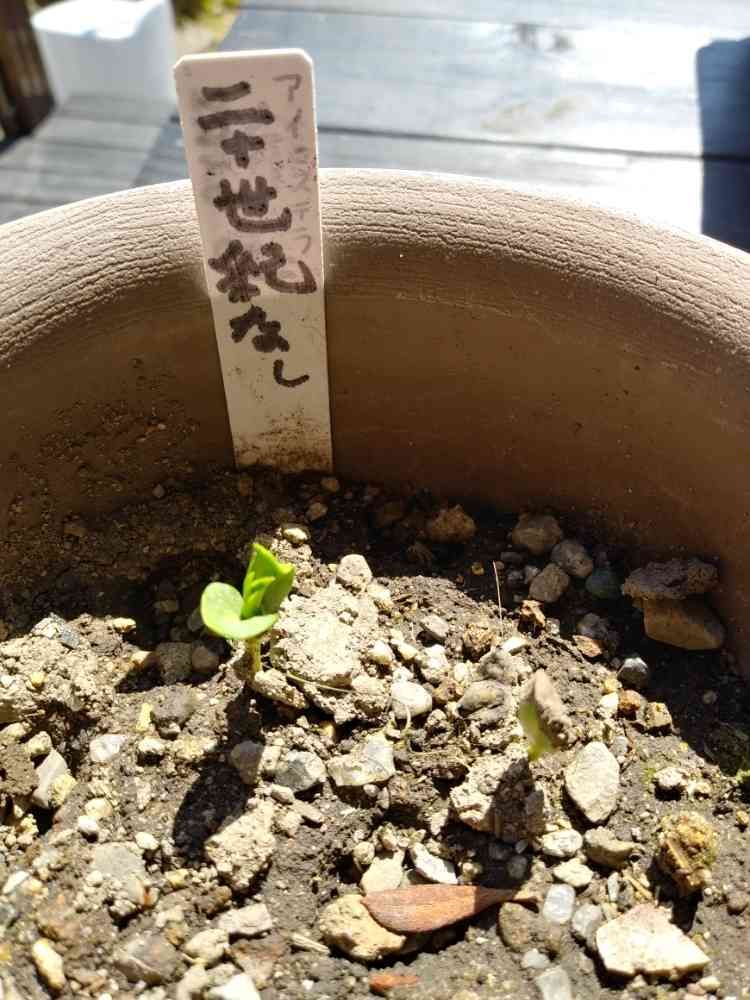 去年の9月に食べた梨の種蒔いたら芽が出てきた😄実がなるの何年後⁉️😅