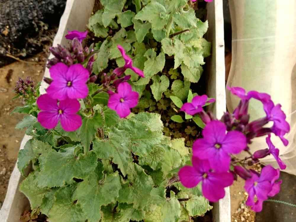 ムラサキチーム💜 あれっ?外のプランターの花よりピンクに写ってるwww