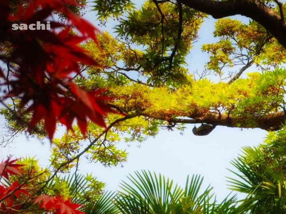 春なのに真っ赤なモミジと青モミジ🍁🍁🍁