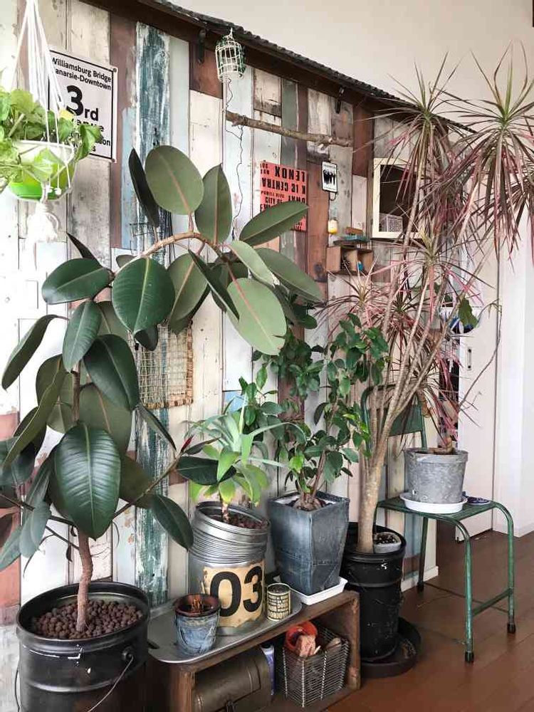 手前のゴムの木、ダイソー産です☆こんなに大きくなるなんて‼︎‼︎