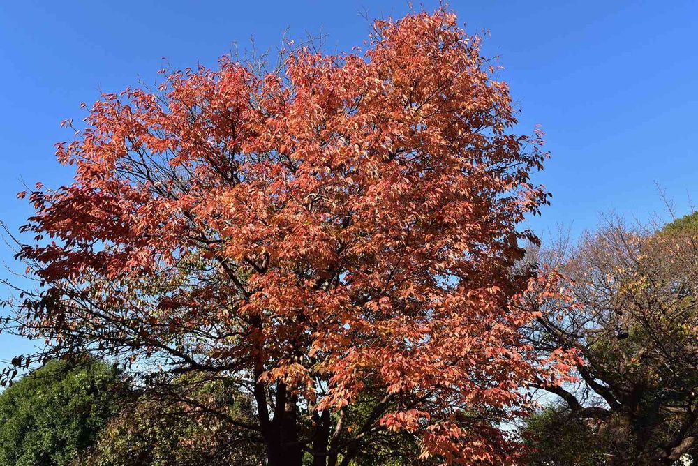 花は地味ですが、紅葉は派手です。木によって黄色だったりピンクだったり。