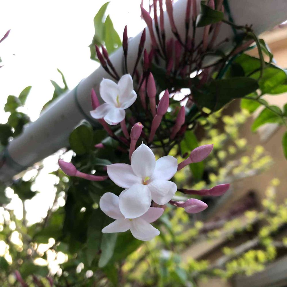 初めまして🎵羽衣ジャスミンかな??チョッと香り強いですよね😂うちにもあります😊スタージャスミンが程よい香りかも、、✌️