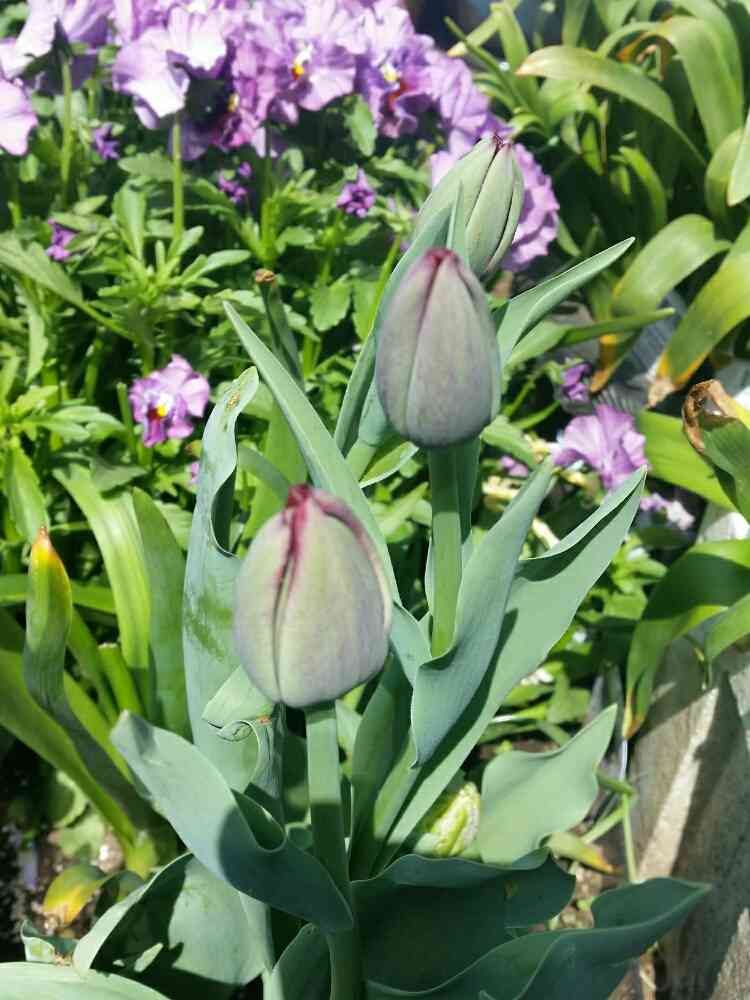 こちらのチューリップのつぼみもだいぶふくらみ、色もでてきました。楽しみです♪