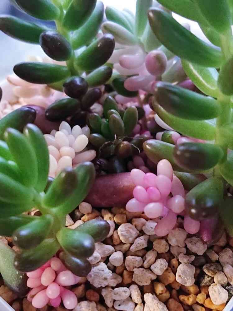 葉挿しで増やすと虹の玉のに戻る確率が高いって言われてるけど、この鉢は良く見ると葉挿しで出来てる