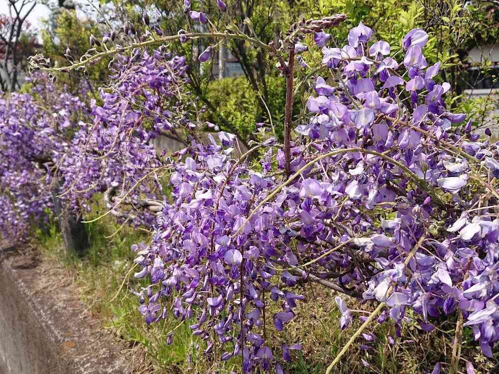 コロナの影響で旦那の仕事がなくなり、家にこもってメンタルヤバそうなので、近所の緑道にお散歩に連れ出した。フジの花が見頃でした☺️