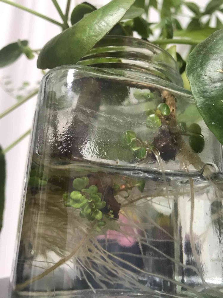 水栽培中のペペロミオイデス。
