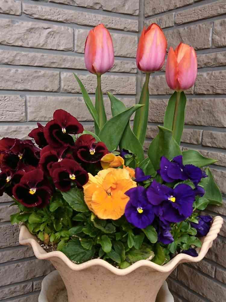 色とりどり春の雰囲気バッチリの素敵な寄せ植えですね🌼🌸🌷