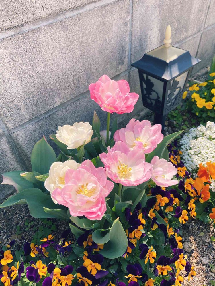 昨秋、バラバラの球根が入ってるのでお安くなってたのをまとめて買ったのですが、とっても可愛いらしいチューリップが咲きました🌷