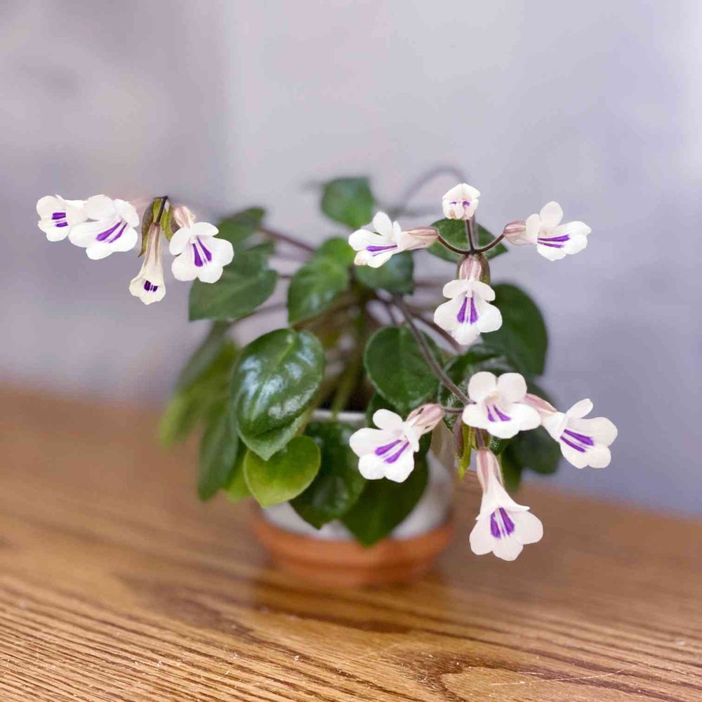 窓際でたっぷり春の陽を浴びたベトナミーズ・バイオレット。気がつくと、可憐な花をこんなにたくさん咲かせていました。