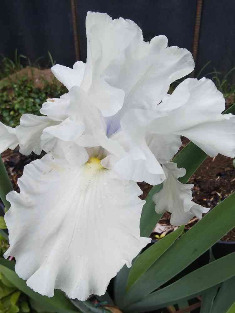 白フリル咲きのジャーマンアイリス「グレーシアアイランド」。中はほんのり紫色してて、いい匂い。八重桜からバトンタッチされて、主役的なお花です。肥料やお水を殆どあげないのに、見事に咲いてくれるお利口さん💜