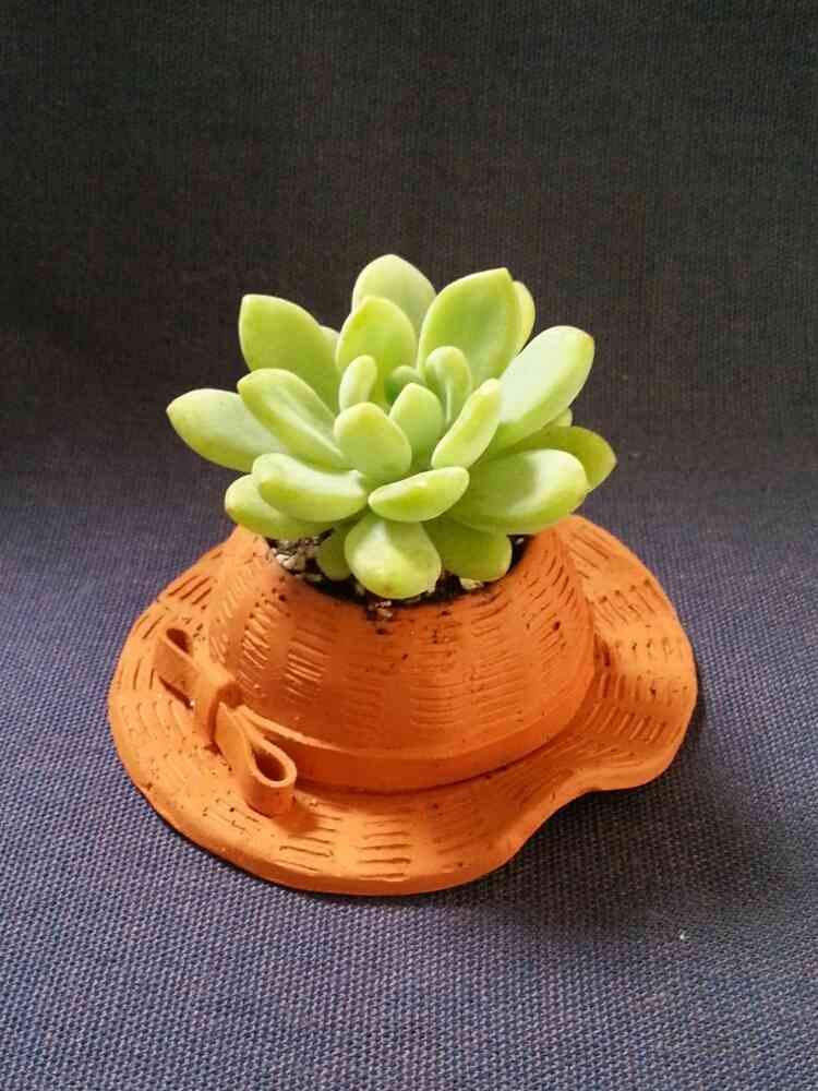 麦わら帽子形のテラコッタミニ鉢を作りました。