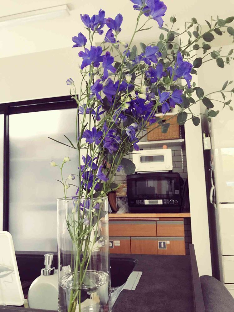 キッチン,ユーカリ,スプレーデルフィニウムの投稿画像
