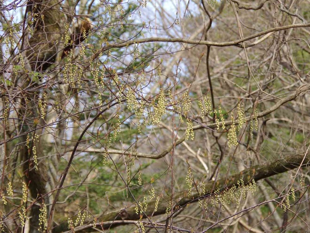 木五倍子(キブシ) だと思います。庭にも有ります.ブドウの様に下がってるのは花序です。小さな花が集まり房状に下がります! 父からの押し売りです😄😄😄❗。