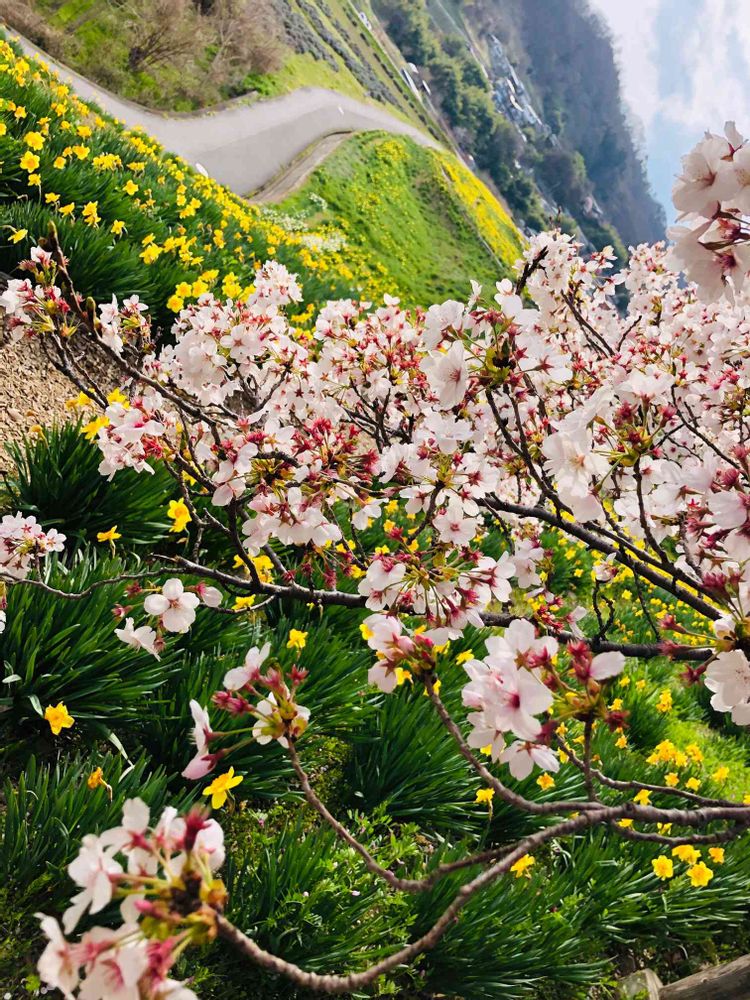 水仙と桜のコラボ🌸