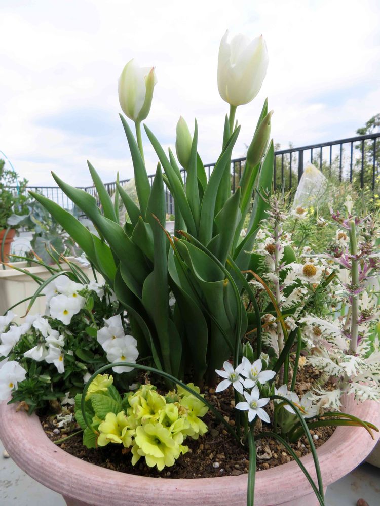 白系で寄植え作ってたトリプルデッカー植えが全部そろった~✨