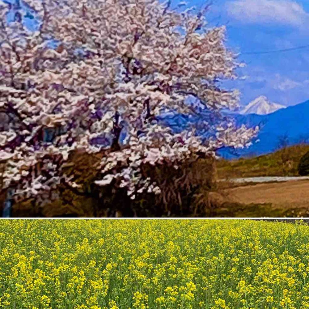 山と桜と菜の花 日本人だなぁと