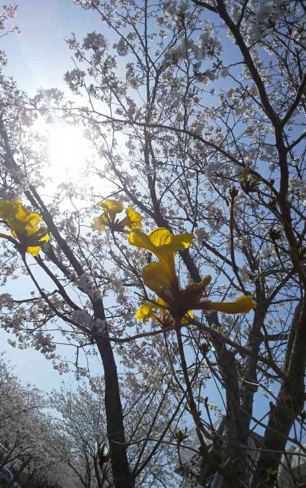桜🌸とイペー💛(沖縄ではイッペー)…花言葉(秘密の恋)