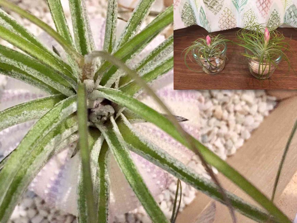 今年初めにピンクの花序付きのチランジアコットンキャンディを2株買ったのだけど(写真右上)、両方とも花序が少しずつ色褪せて緑になり、結局咲かずに終わってしまいました。私の中では、ずっとUVカットガラス(Low-Eガラス)越しの光だったのが原因かなと思っていて(後から、ある色素を発色させるには紫外線が必要とネットで見たので)、今はたまに直射日光を当てるようにしています。こういうご経験がある方はいらっしゃいますでしょうか。
