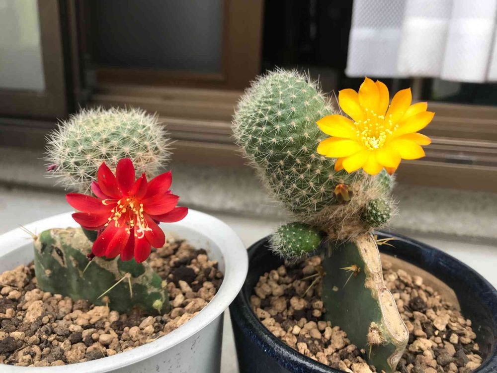 レブチアの赤花と黄が同時に咲きました。