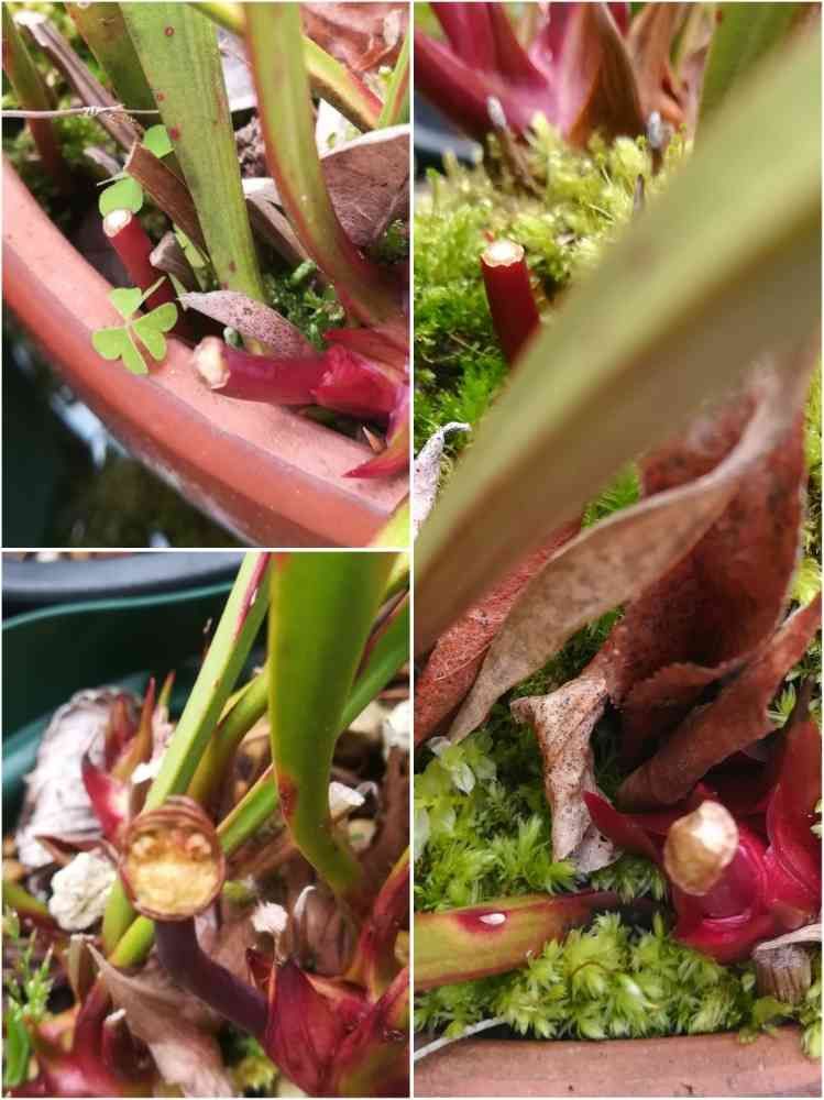 今年はサラセニア レウコフィラ(仮)の花芽が中々上がって来ないな~と思ってたんですが、あまりにも遅いので株元を探してみると····( ̄□ ̄;)!!