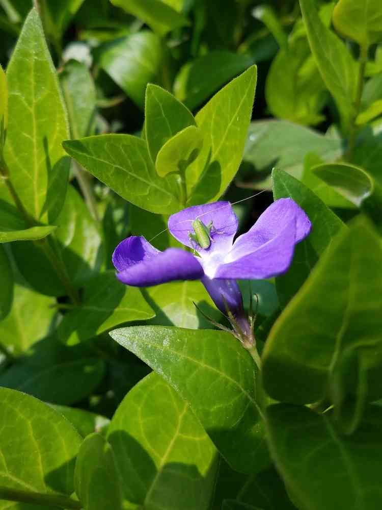 ひろさんの広い庭,ツルニチニチソウ,キリギリスの赤ちゃんの投稿画像