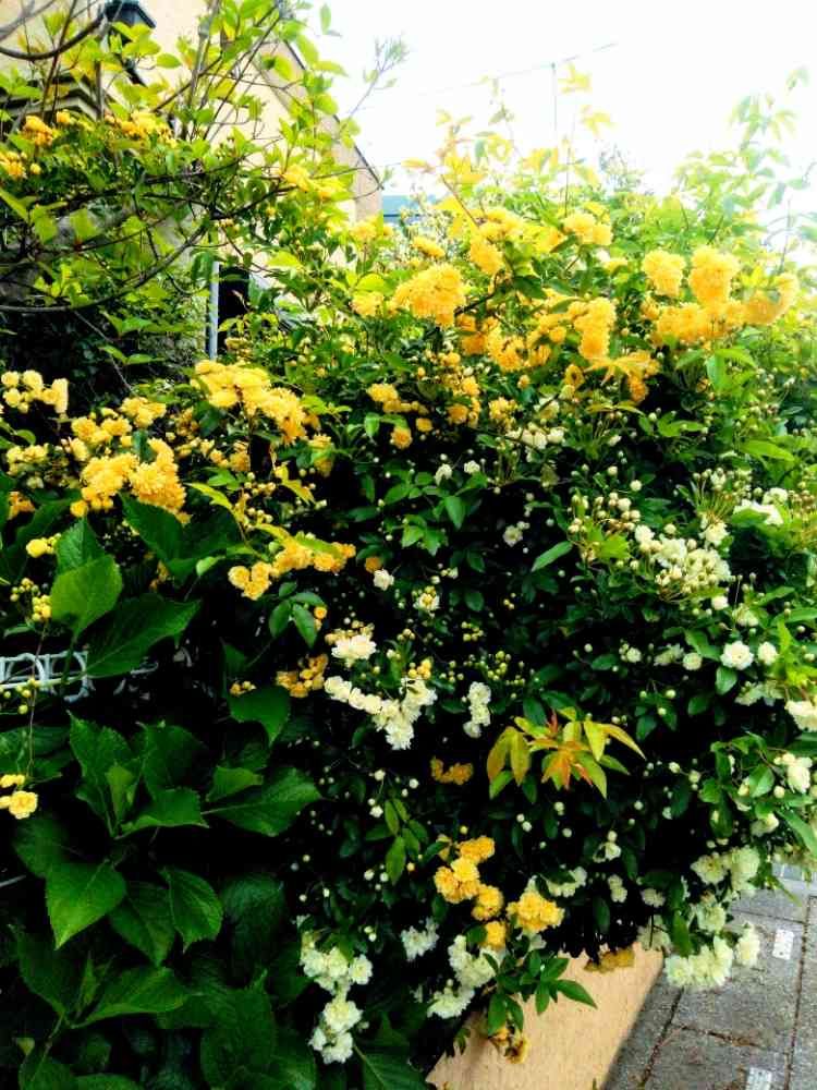 ご近所のお庭の、黄色と白のモッコウバラが、綺麗でした。