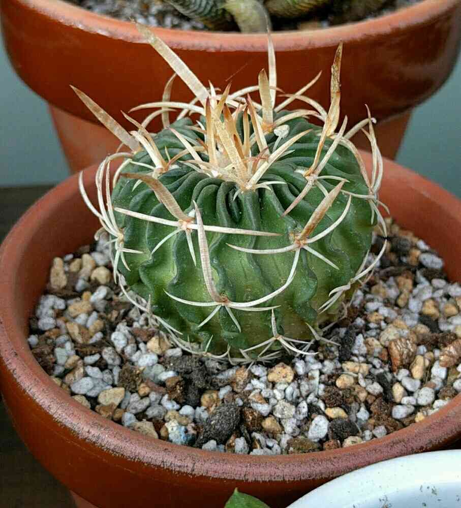 うちの子とそっくりのサボテンです♪私もホムセンでラベルなしで購入して、うねうねの稜があるのはみんな縮玉だと思っていたのですが、私のものも竜王なのかな。。いろんなかけあわせで様々な種類が作られているんですね。