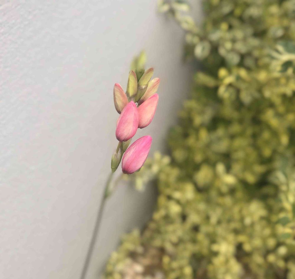寄せ植えの鉢から出遅れたイキシアの蕾が膨らんでいました^_^