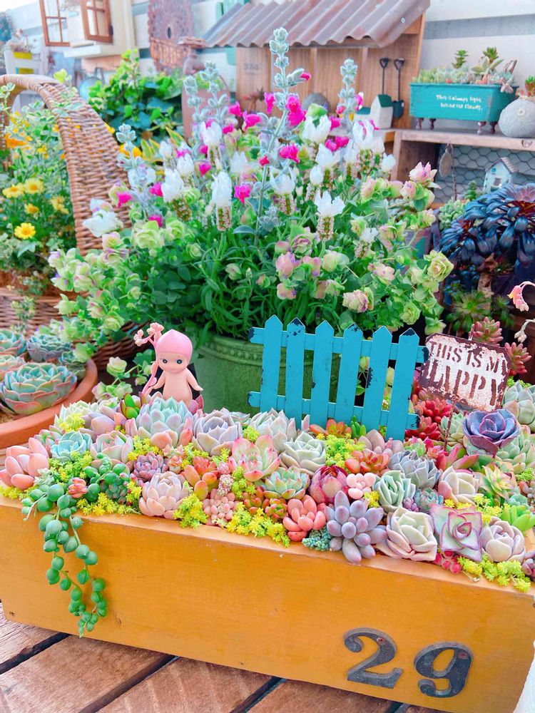 小さい寄せ植えをいっぱい作ろうかな?とも思ったけど、せっかくなので『箱いっぱいセット寄せ植え😆💕💕』にしちゃいました〜( ∩˃ ᵕ ˂∩ )♡♡♡