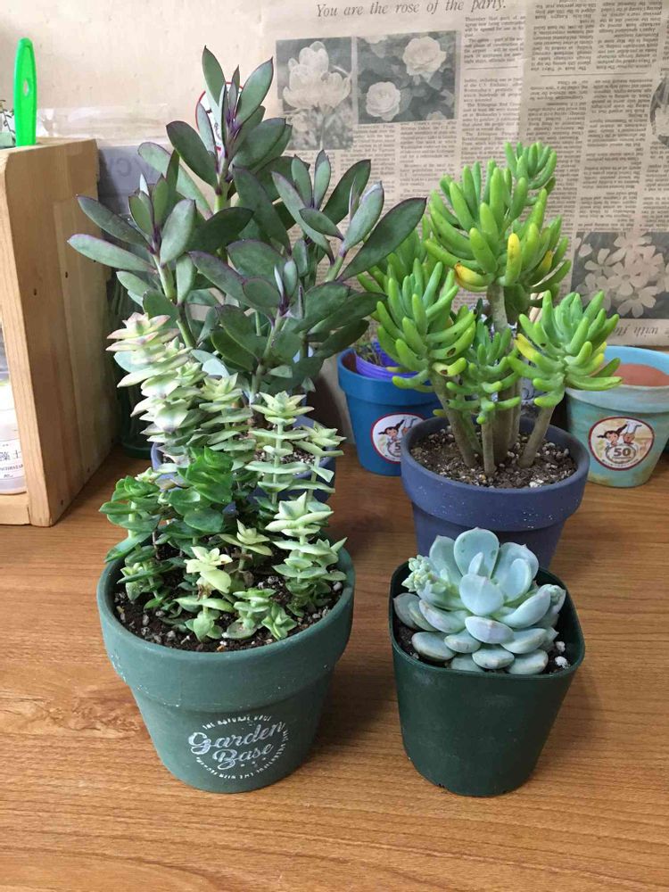 こんにちは☺️。昨晩から降り始めた雨で外出自粛。家で多肉事ざんまい、という事で先週お迎えした多肉4鉢を植え替えました。多肉初心者としてはちょっと冒険ですが、こんな大きめの多肉さん狩っちゃいました。😁