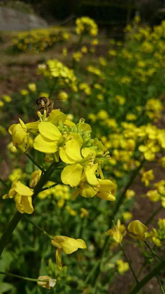 菜の花にとまる蜜蜂が可愛すぎて❤