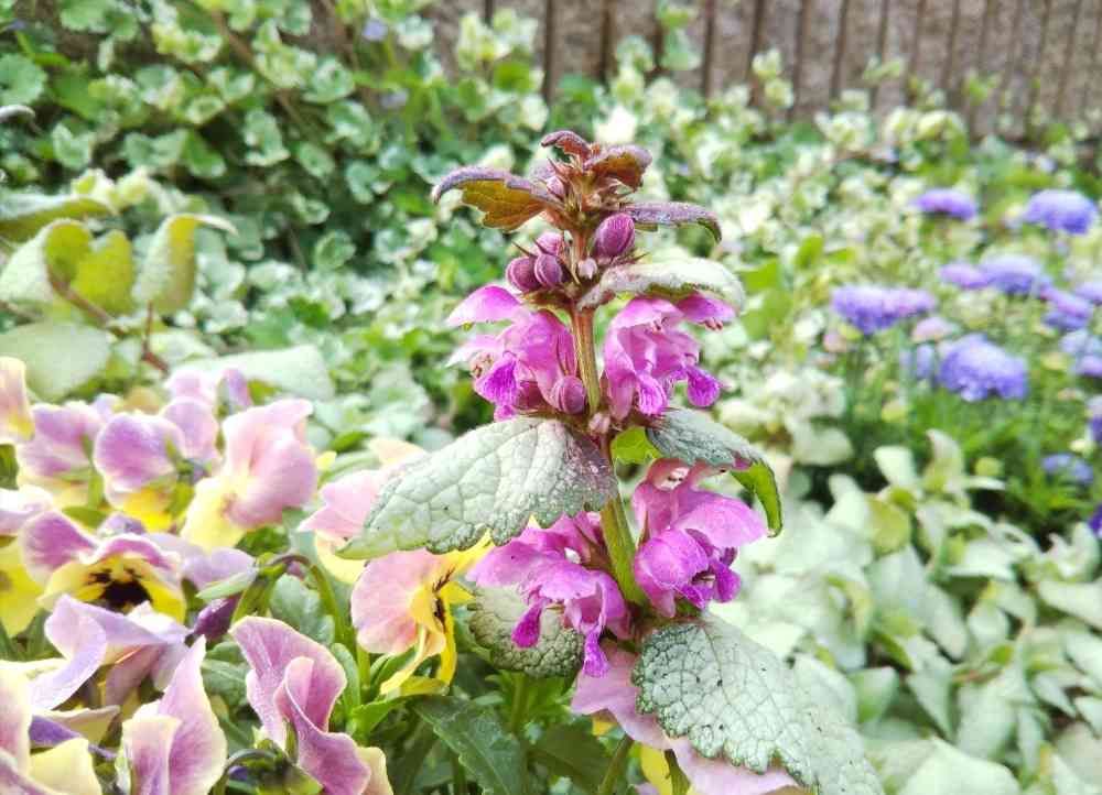 花壇のラミウム・スターリングシルバー、開花しました✨