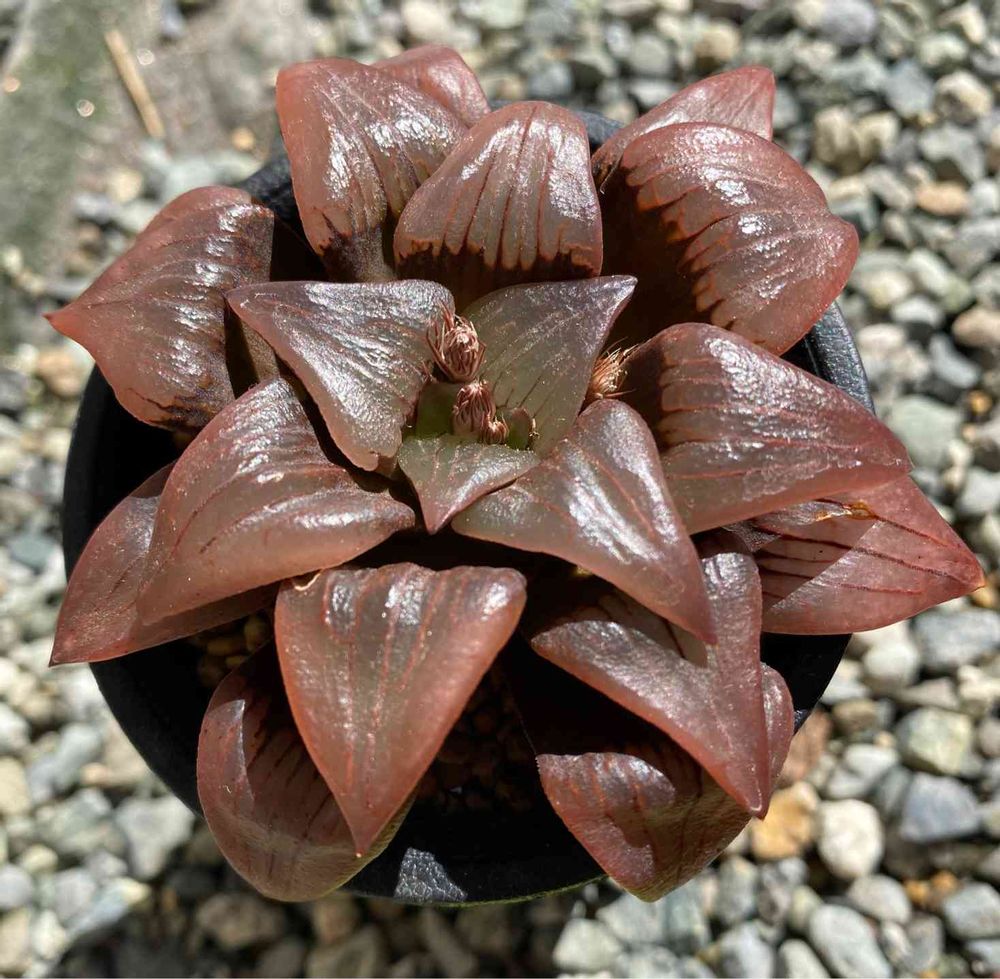メルカリで買ったので、出品者さんが手に入れた時がどんなかはわかりませんが、他の方のアトロフスカミュータントの写真を見るとだいたい緑で大きな窓の子なので、日焼けする環境で育てていたのかもなーって🤔