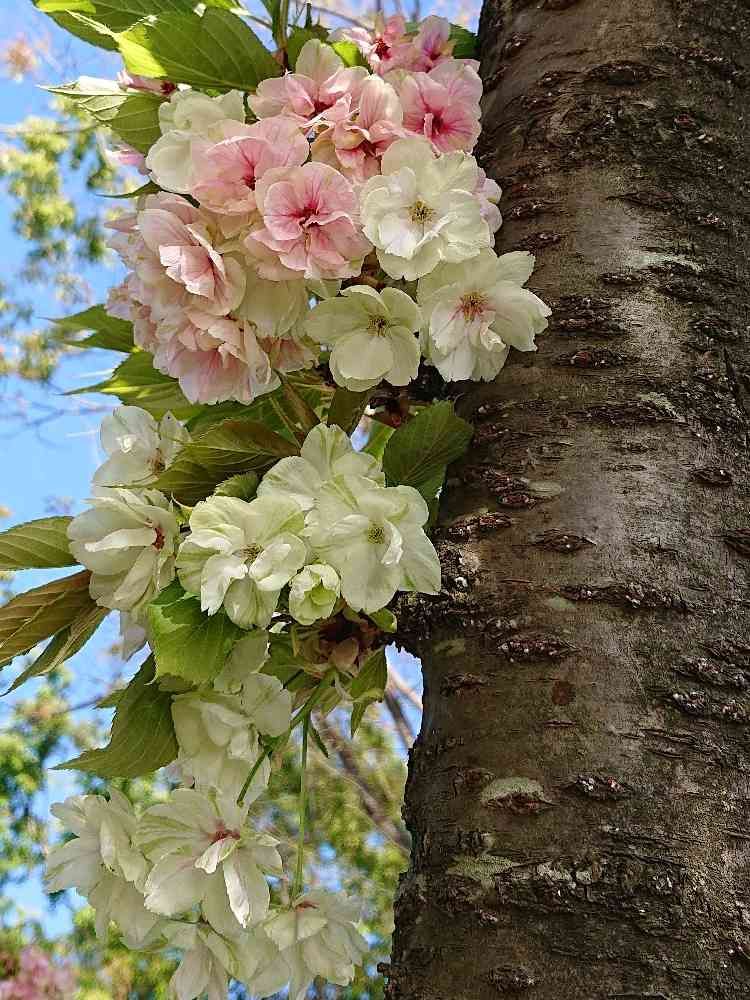 一見、緑で葉っぱみたいで、もしかしたら、まなさんの身近にもあるかもしれません。普通の桜より少し後に咲きます。