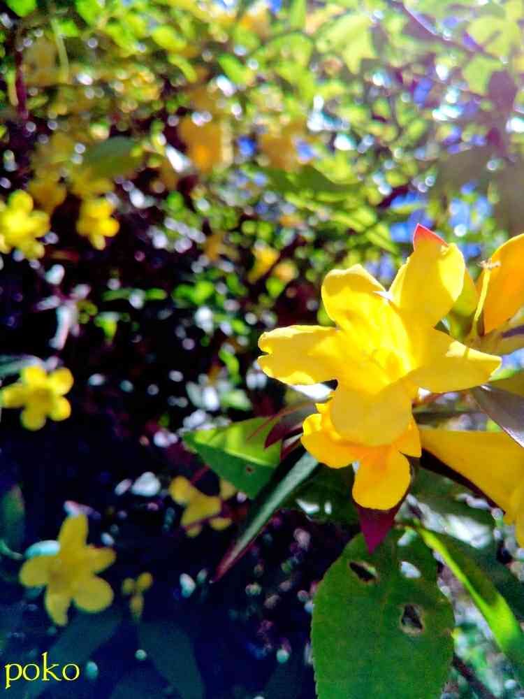 庭のカロライナジャスミンも陽の光を浴びて輝いています✨