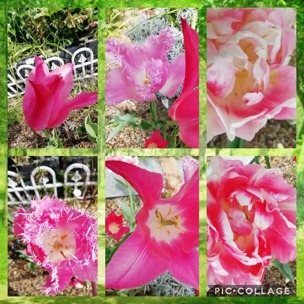 帰宅後、庭のチューリップは、ほとんど花が散り、茎と葉のみでした。かろうじて六本が残っていました。満開のチューリップ🌷今年は、見られなかった