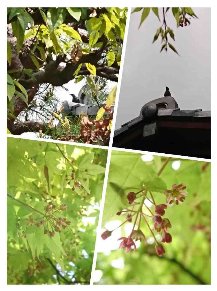 小さな庭,モミジのお花,野鳥のいる風景の投稿画像