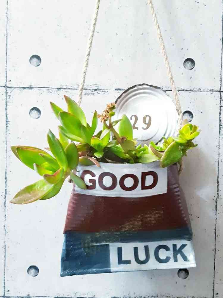 たかりえさんの手作りの素敵な吊り下げ鉢に火祭りを植えてみました🌱