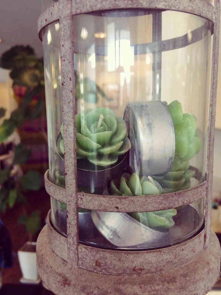 前の写真の右上、ランタンの中身はエケベリアのロウソクが入っております。