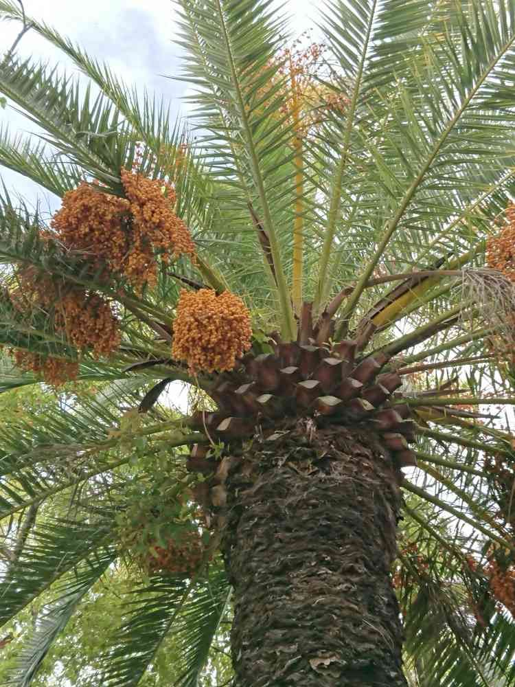 ヤシの実の成っているのを見ました。高さが6〜7m位あります。